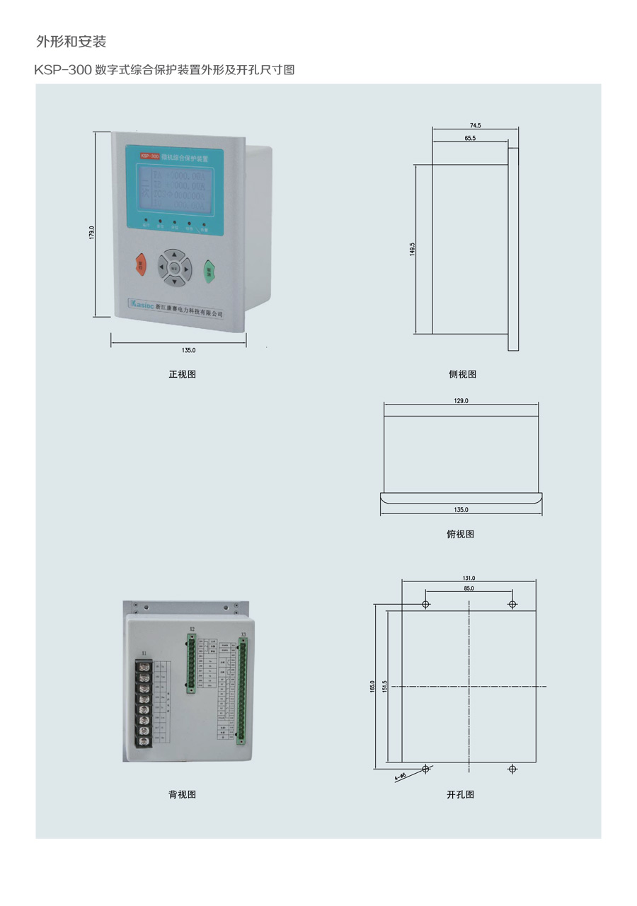 KSP-300 數(shù)字式綜合保護(hù)裝置是我公司為適應(yīng)我國電氣成套事業(yè) 發(fā) 展的需要,積累多年電力自動化產(chǎn)品開發(fā)經(jīng)驗,運(yùn)用新技術(shù)、新工 藝 而推出的一款經(jīng)濟(jì)型綜合保護(hù)裝置。裝置結(jié)構(gòu)設(shè)計緊湊、體積小 巧,交 直流電源通用,可滿足 10KV 及以下電壓等級進(jìn)出線、廠用 變等保護(hù)測 控功能。